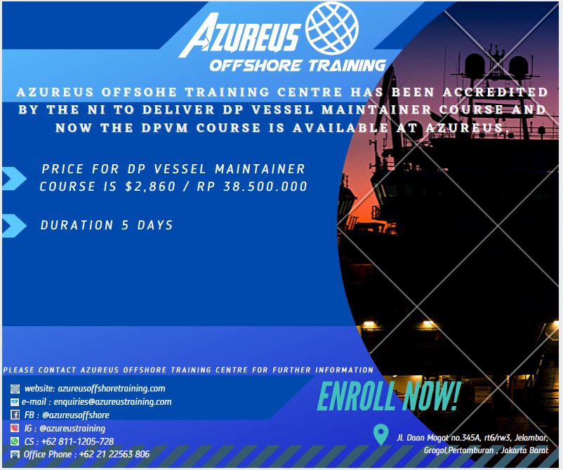 Azureus Offsohe Training Centre has been accredited by The NI to deliver DP Vessel Maintainer Course and now the DP Vessel Maintainer Course is available at Azureus.
